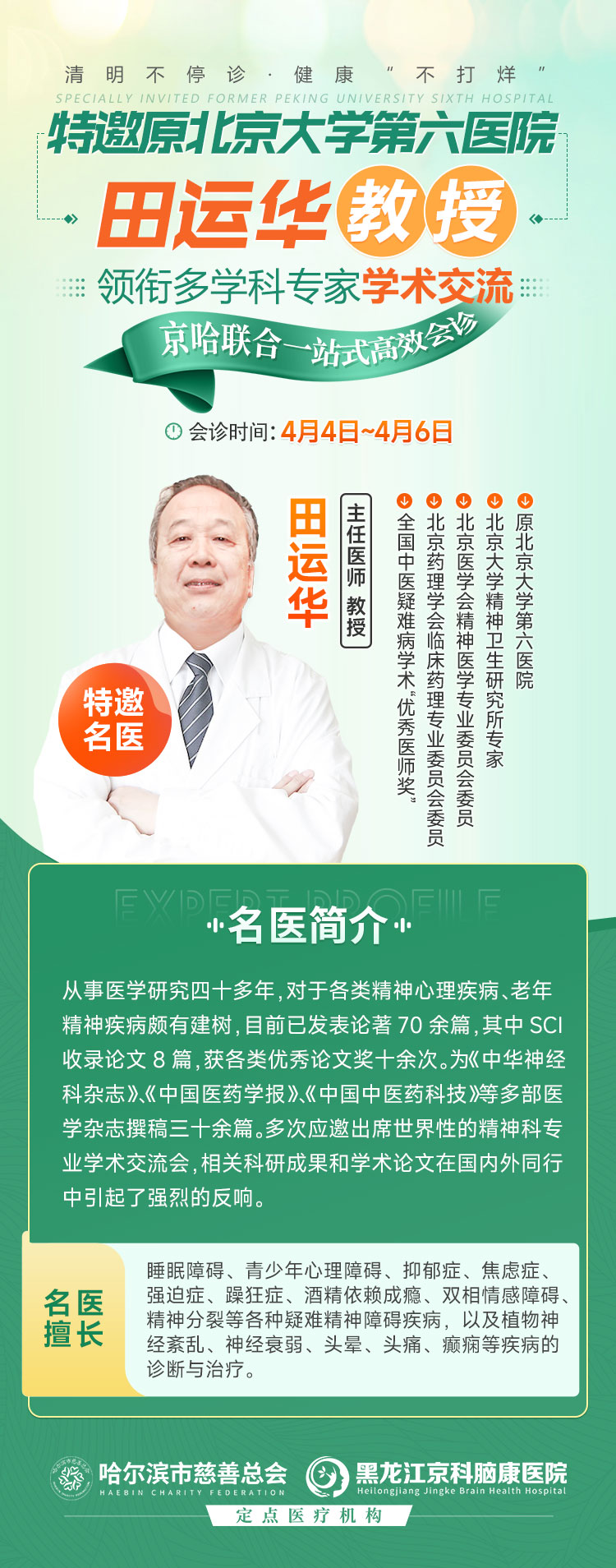 趁著清明假期來黑龍江京科腦康醫院!4月4日—4月6日